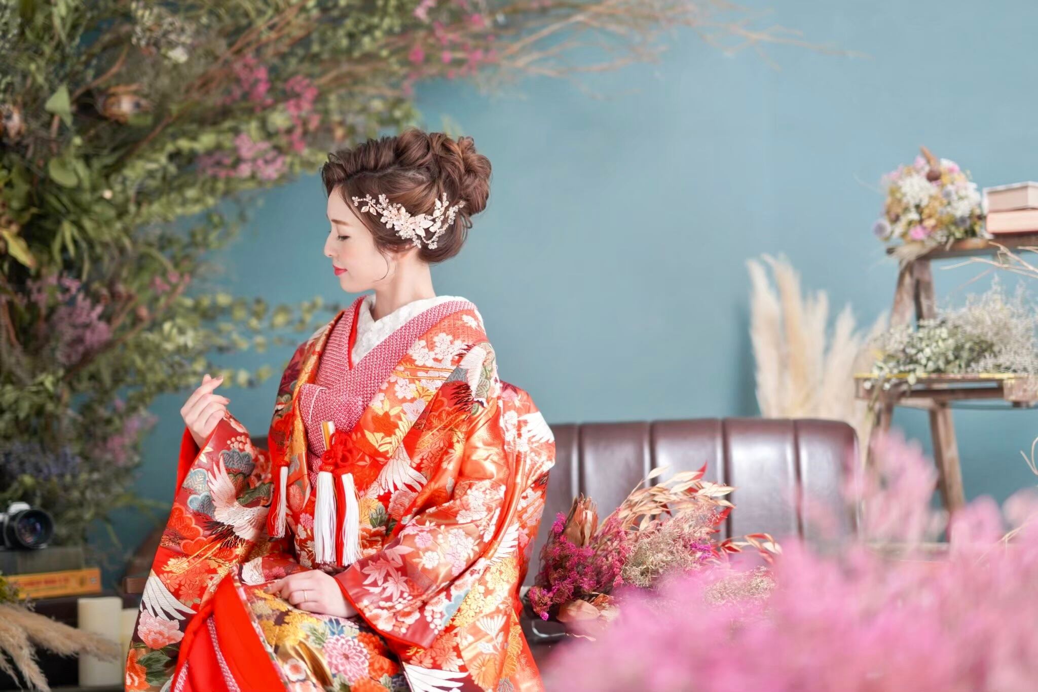 上品なゴールドカラーはウェディングドレスにはもちろん、和装スタイルにも合わせていただけます