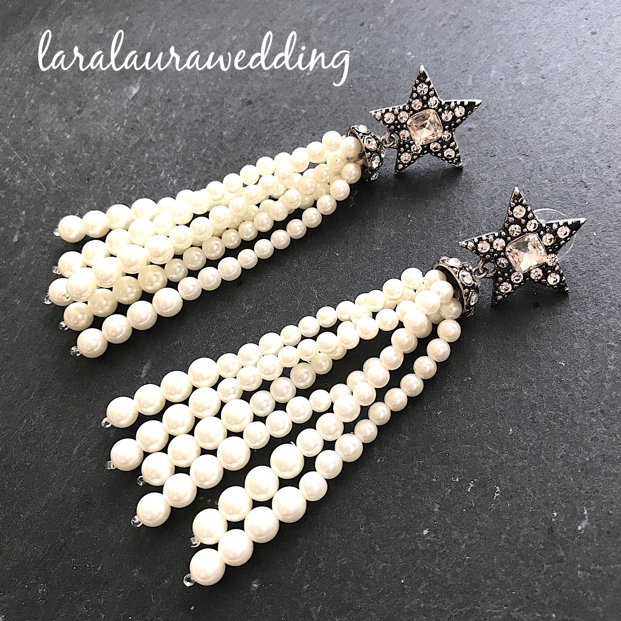 スターモチーフ、ホワイトパールとタッセルイヤリングでオシャレ花嫁に