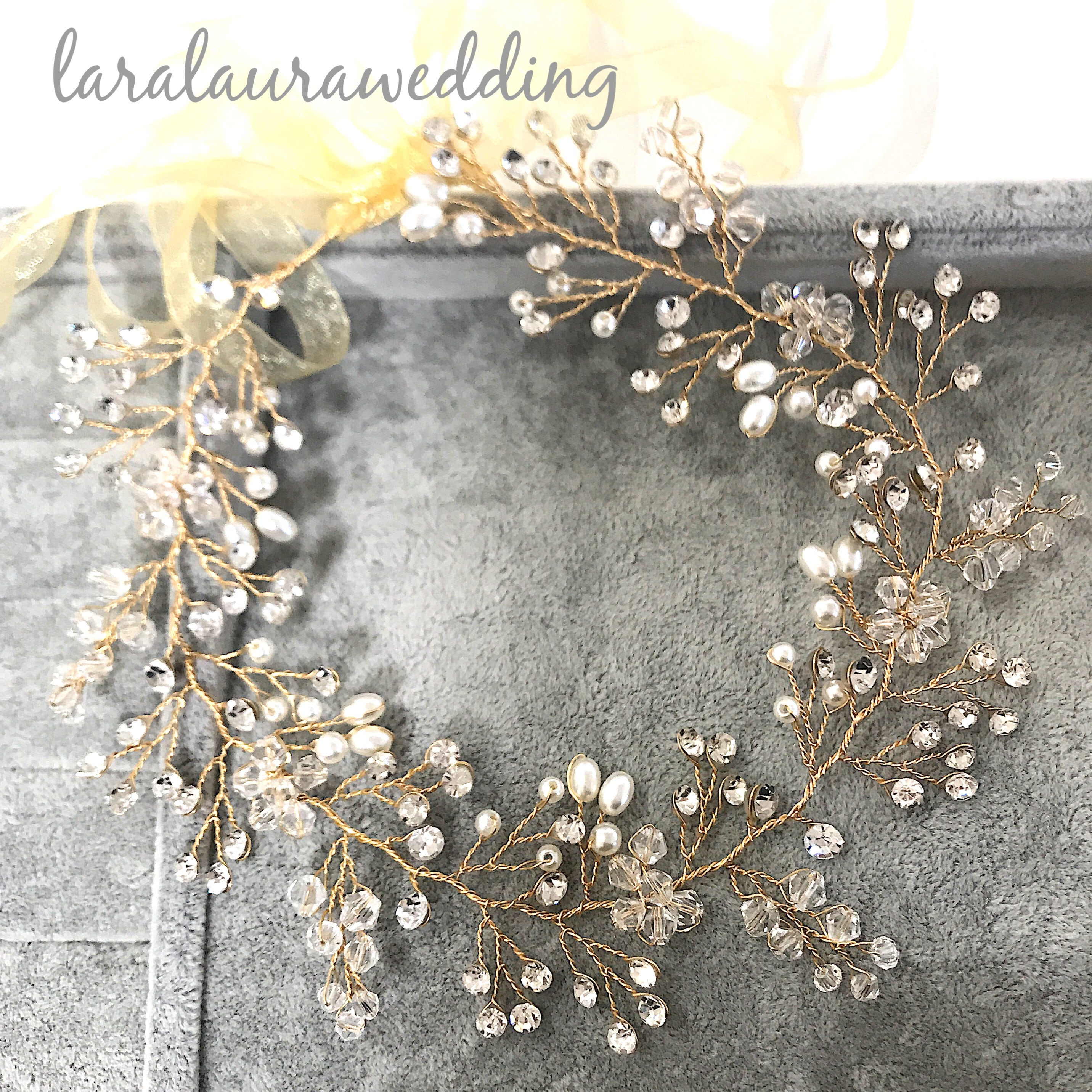 素材:ワイヤー、パール、クリスタルビーズ、ストーン、オーガンジー素材のリボン